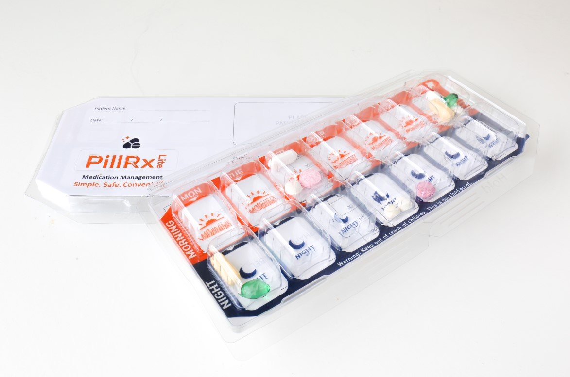 PillRx Lite is a premium compliance packaging system designed for simple, safe, and convenient medication management. It is easy to use and fill, requiring no guiding tray or special equipment to seal. Made from high-quality plastic, it provides durable sealing properties that prevent medications from slipping into the wrong slots, ensuring accurate dose administration for patients on complex regimens.
